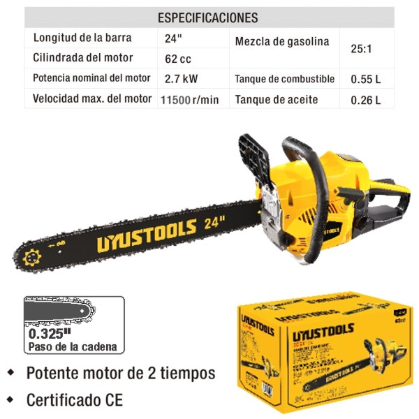 MOTOSIERRA UYUSTOOLS GASOLINA 62CC